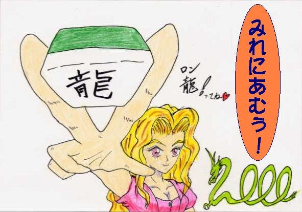 UG様から頂いた年賀状です。 UGさんは、なりぽしが麗子お嬢様のファンを名乗ってネットデビューする以前から、そこつや さんのキャラコンで麗子お嬢様に投票なさっていました。 「なりぽし、私のファンクラブ会長のUGさんね。」 「そうです。 でも絵心も有る方なんですね。感心しました。」 「マージャンやるのかしら。 なりぽしも好きよねマージャン。」
