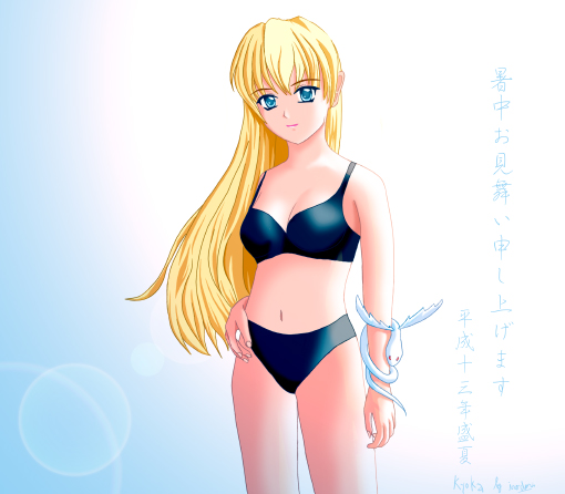 【エンジェル・ハンター】を運営する ゆきさんから頂いた暑中見舞いCGですぅぅぅ。 ゆきさんオリジナルのキャラのようです。 とっても可愛い〜♪ デザインもキャラもどちらも素敵〜♪ |